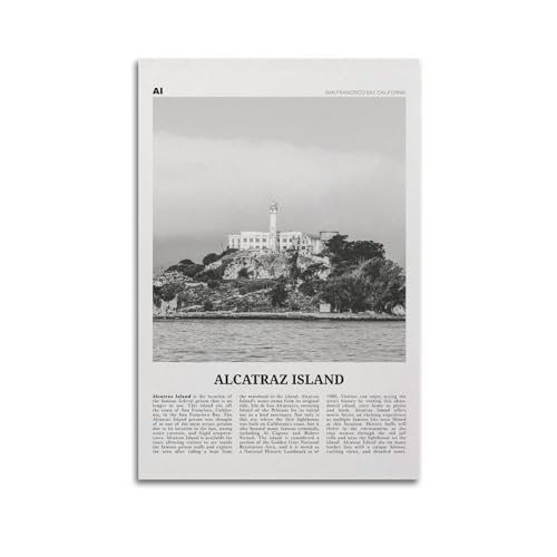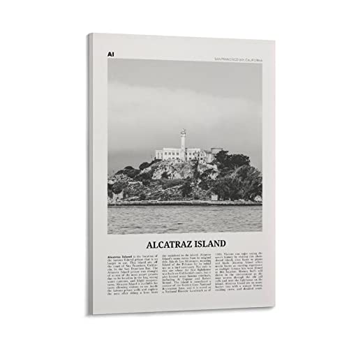 LZTEN Alcatraz Island Print Schwarz und Weiß, Alcatraz Island Wandkunst, Alcatraz Island Poster, Alcatraz Island Foto, Alcatraz Island Wanddekoration, Leinwand Wand