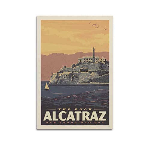 KWID Vintage-Reiseposter Alcatraz Island CA Poster, dekoratives Gemälde, Leinwand, Wandposter und Kunstbild, modernes Familien-Schlafzimmer, Dekoration, Poster, 30 x 45 cm