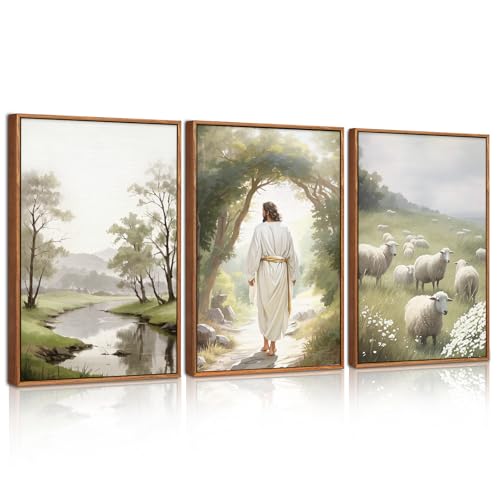 CHDITB 3 Teiliges Jesus Christliche Wandkunst,Jesus Lamm Christian Leinwandbilder Gerahmte Poster Religiöse,Ostern Gott Religion Bibel Geschichte Wandkunst für Familie Schlafzimmer Wohnzimmer,30x40cm