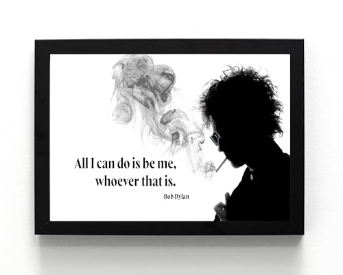 A5 gerahmtes Zitat "All I Can Do Is Be Me", inspirierendes Zitat von Dylan Bob, Schwarz-Weiß, Wandkunstdruck, Musiklegende, geeignet für kleinere Orte, Arbeitszimmer, Heimbüro, leichte Geschenkidee