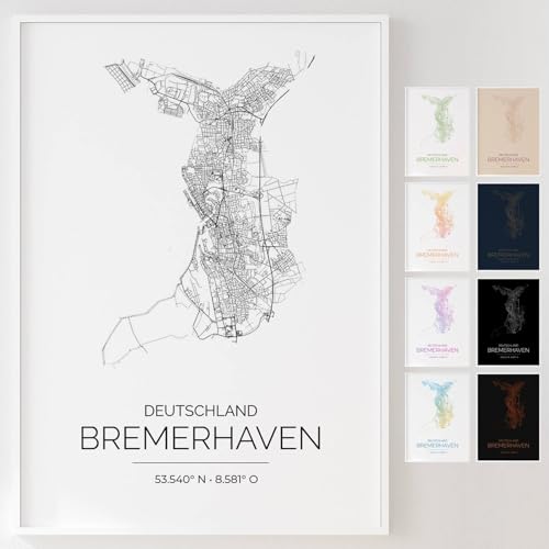 Mapdify Bremerhaven personalisiertes Stadtposter, dein Lieblingsort als Wandposter, Karte deiner Stadt, personalisiertes Andenken an Bremerhaven – Stil: Pure