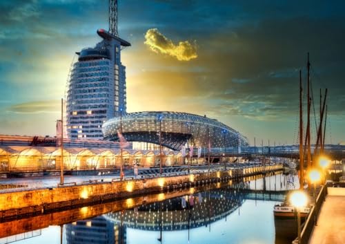 Murrano Poster Wandbilder Deko Wohnzimmer - Städte - zur Selbstmontage mithilfe eines Magnets montiert - aus Metall - City Lights - Bremerhaven - 67 x 48 cm