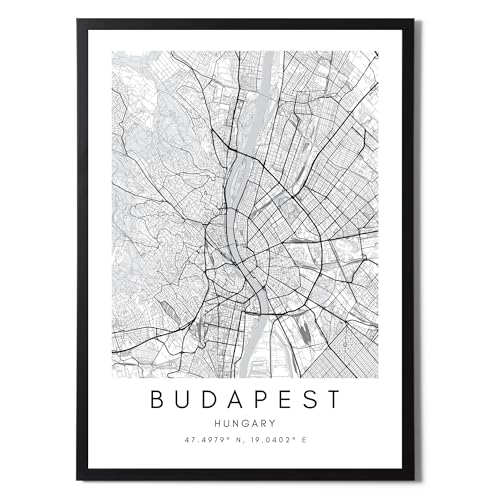 Druck Budapest Stadtplan nordischer Stil schwarz und weiß. Plakat A4 bedruckte Papier Keine 250 gr. Gemälde, Drucke und Poster für Wohnzimmer und Schlafzimmer