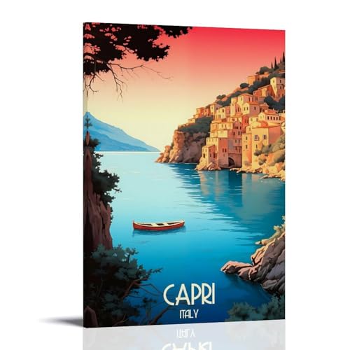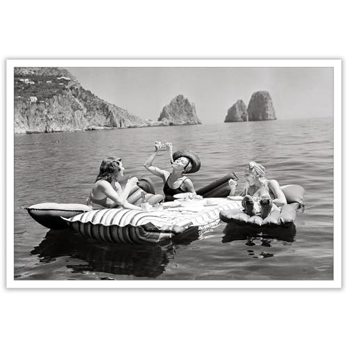 Dcvjiy Vintage-Poster „Eating Spaghetti On The Water“ – Capri-Insel-Leinwandkunst, flippiger Champagner-Bar-Druck, Wandbild für Wohnzimmer, Schlafzimmer oder Party, 30,5 x 40,6 cm, ungerahmt