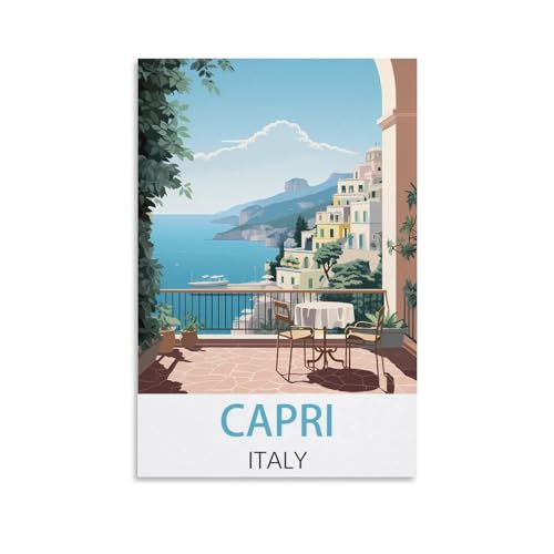 HCNEIAX Vintage-Reiseposter, Motiv: Capri-Küste, Italien, See, 30 x 45 cm, moderne Leinwand, Wandkunst, Poster für Wohnzimmer, Dekoration, Gemälde für Heimdekoration