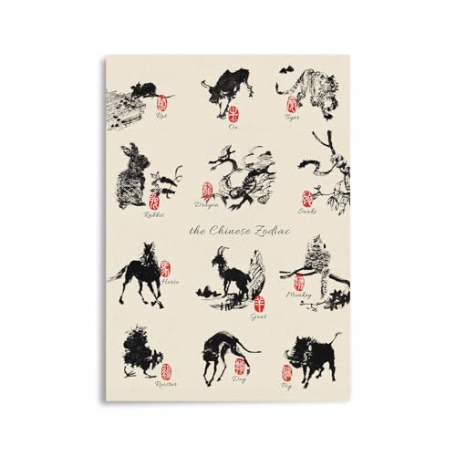 IUAUTVZM Dekoratives Gemälde auf Leinwand im chinesischen Stil, Tierkreiszeichen, Ratte, Wandposter und moderne Familienschlafzimmer-Dekoration, 20 x 30 cm