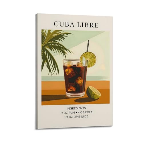 Happymotive – Premium Cocktail Poster wahlweise in DIN A3 oder DIN A4 – Premium Druck auf 300g Papier – Wanddekoration für Bar, Küche und Homebar, Office ohne Rahmen Cuba Libre A4