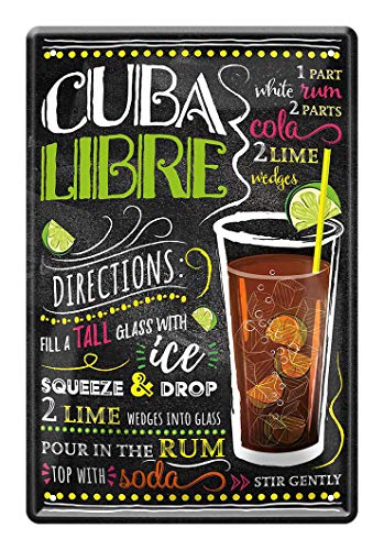 WOGEKA ART Retro Blechschild - Cuba Libre Cocktail Rezept - witziger Spruch als Geschenk-Idee zum Geburtstag Weihnachten zur Dekoration 20x30 cm Vintage-Design aus Metall 134