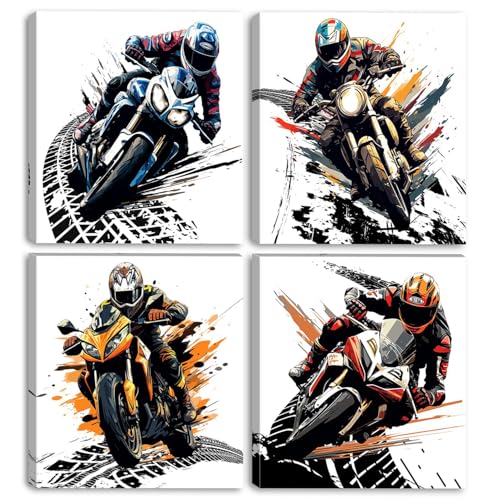 Komergave 4 Stück Motorrad-poster, Graffiti Motorrad Wall Art, Motocross-Poster Wandkunst, Jungen-Raumdekoration Bilder für Mann, Jungs, Ohne Rahmen 30 x 20 cm