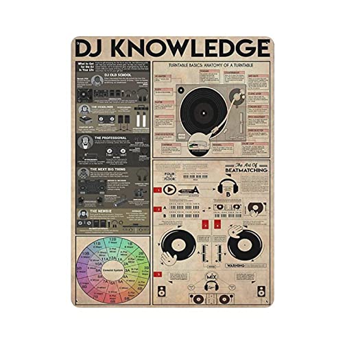 Oudrspo Dj Knowledge Metall-Blechschilder, Periodensystem des Dj, Poster, DJ-Referenzhandbuch, Plaketten, Zuhause, Club, Bar, Wandkunst, Dekor, 20,3 x 30,5 cm