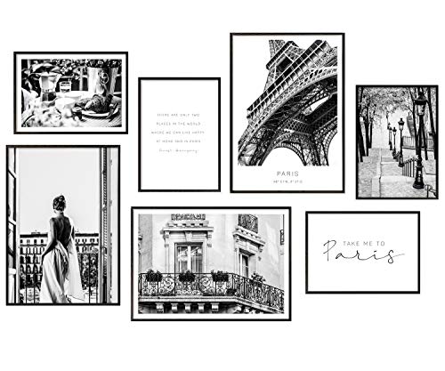 ARTFAVES® Poster Set - SPRING IN PARIS - mehrteilige Wanddeko Wohnzimmer & Schlafzimmer - 8 moderne Wandbilder Frühling, schwarz weiß, rosa, Fashion - ohne Bilderrahmen