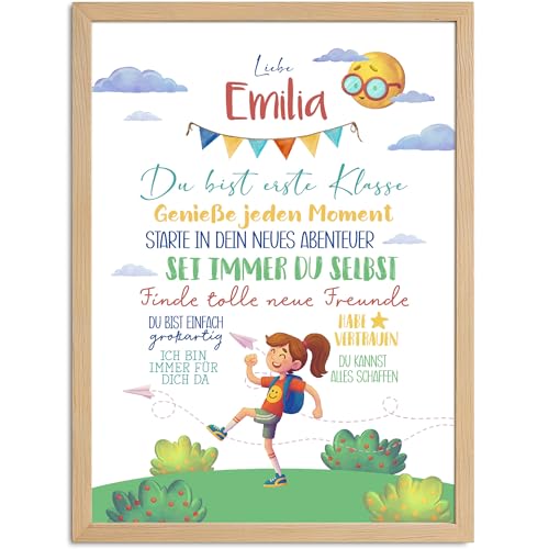 LALELU-Prints Geschenk Einschulung personalisiert I Affirmationsposter Poster Kinderzimmer I Schulanfang Schuleinführung Schulstart Schulkind I OHNE RAHMEN - Junge Mädchen (Einhorn)