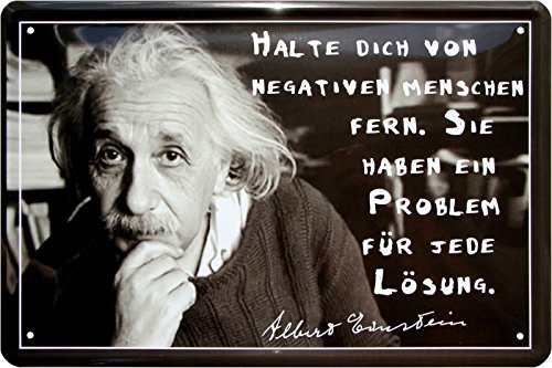 WOGEKA ART Blechschild - Halte Dich von negativen Menschen fern Albert Einstein - witziger Spruch als Geschenk-Idee Geburtstag Weihnachten Deko 20x30 cm Vintage-Design Metall 433