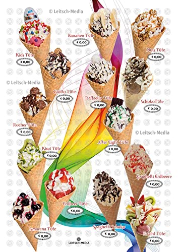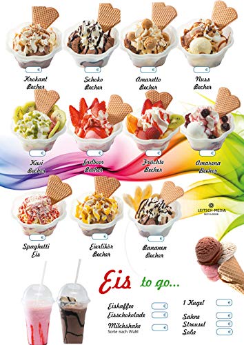 Leitsch-Media 2x Eiskarte Speisekarte, Menü Karte Eis zum Mitnehmen, DIN A1 Werbe-Plakat, 59 x 84 cm, 170g Papier glänzend, Kundenstopper Banner Werbung für Eiscafe Eisdiele Eiswagen Eisladen