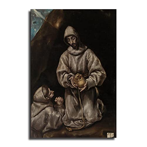 El Greco Saint Francis And Brother Leo Meditating on Death Leinwand-Kunst-Poster und Wandkunstdruck, modernes Familien-Schlafzimmer-Dekor-Poster, 30 x 45 cm