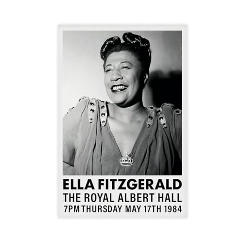 QIENAZIO Ella Fitzgerald Schwarz-Weiß-Musik, Retro-Leinwandkunst, Wanddekoration, Poster, Zuhause, Bar, Restaurant, Garage, Café, Logo, Geschenke, 50 x 75 cm
