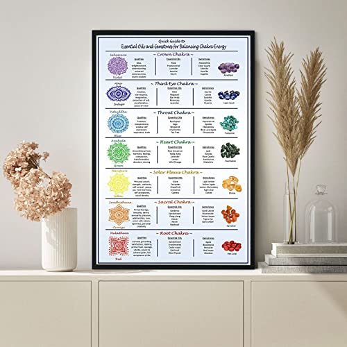 Strunt Ätherische Öle und Edelsteine zum Ausgleich von Chakra-Energie, Poster, Chakra-Poster, Yoga-Wissen, sieben Chakren, Wissen, Meditation, Metall-Blechschild, Wanddekoration, Kunst, 20,3 x 30,5 cm