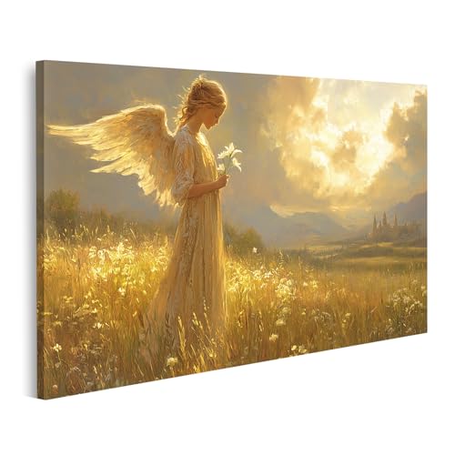 Engel Bild in Beige - Kunst Poster Weg ins Herz, Wohnzimmer Wanddeko, Sinnvolles Geschenk für Mama,Oma,Freundin. Wandbild für Lichtarbeit, Kraft und Stärkung.
