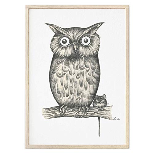 MHARTK66 Mond und Eule Leinwand Bilder, 50x100 cm Groß Wandbilder Wohnzimmer Schwarz und Weiß Bild Aesthetic, Modern Wanddeko Kunstdruck Schlafzimmer Badezimmer Büro Esszimmer Küche