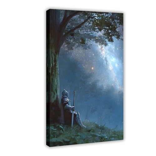Wandkunst „Lady Knight Reading In The Forest“, Ölgemälde „Frau mit Ritter“ im Vintage-Stil, mittelalterliches Fantasy-Poster auf Leinwand, Dark Academia-Bild mit Wildblumenfeld 30x40cm ungerahmt