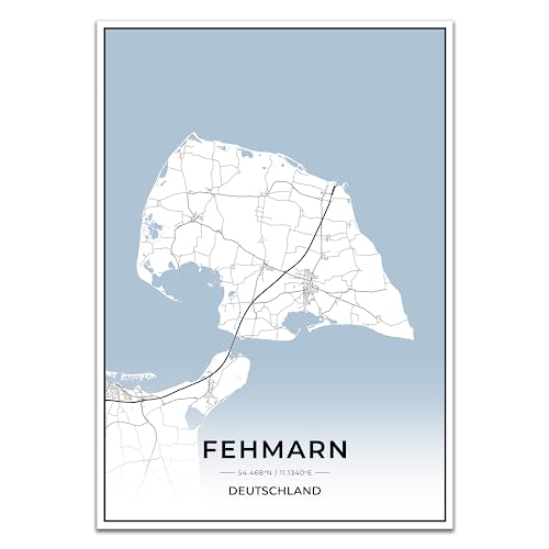 Vacentures Fehmarn Karten Poster - Premium Wandbild ohne Bilderrahmen I Moderne Wanddeko für Wohnzimmer oder Schlafzimmer I Hochwertiger Druck (Blau, 30x40 CM)