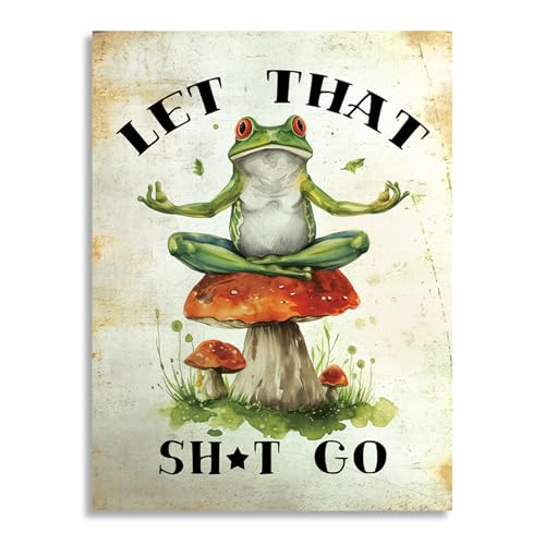 Matsumoto Hoji Wandkunst, japanischer Frosch, Vintage-Stil, niedlich, lustig, Samurai-Frosch, Poster und Drucke, eklektische Tier-Leinwand-Wanddekoration (grün, 40,6 x 61 cm, ungerahmt)
