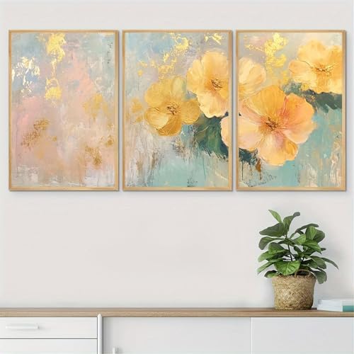 EXQULEG 3er Premium Poster Small Fresh Gelb und Grün Blümen Pflanzen Poster Set, Moderne Nature Grünpflanzen Bilder, Ohne Rahmen Wandbilder, Boho DekoWanddeko für Wohnzimmer Schlafzimmer (50x70cm)