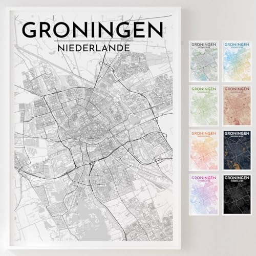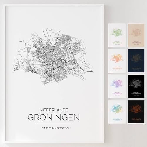Mapdify Groningen personalisiertes Stadtposter, dein Lieblingsort als Wandposter, Karte deiner Stadt, personalisiertes Andenken an Groningen – Stil: Studio