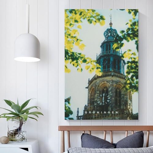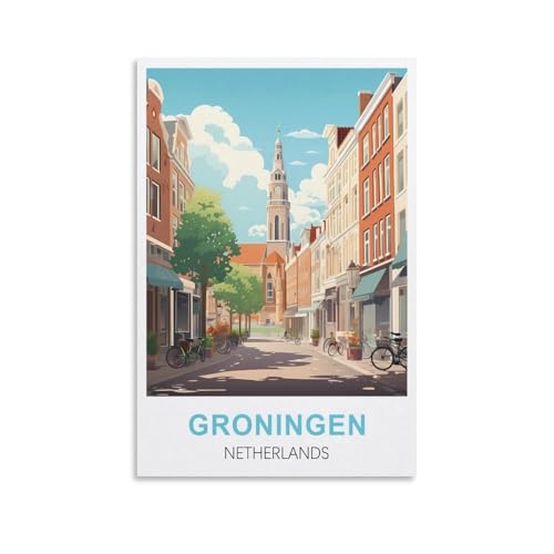Black And White Print of Groningen, Netherlands Poster Dekorative Malerei Leinwand Wandkunst Wohnzimmer Poster Schlafzimmer Malerei,Wandkunst Bilddruck Moderne Familienzimmer Dekor 08x12inch(20x30cm)