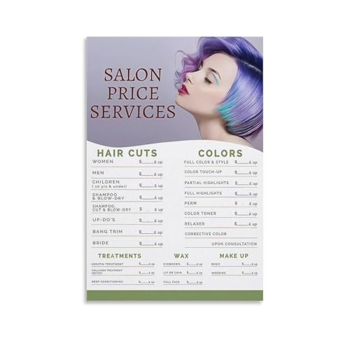 Hair Salon Price Guide Poster, Beauty Service Menu with Clear Chart, Canvas Wall Art for Decor in Living Room, Kitchen, and Clinic(Unframed,08x12inch(20x30cm))