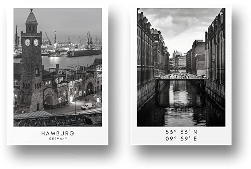 Freyheit | Premium Poster Set | stilvolles 2er-Set mit passenden Bildern in schwarz-weiß | 2 Stück in DIN A4 (21x30cm) oder DIN A3 (30x42cm) | ohne Bilderrahmen » Städte « (Hamburg, A3)