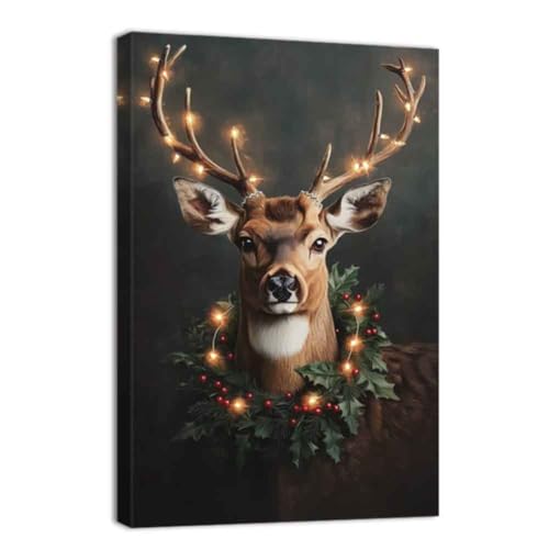 Vantboo Hirsch Lesung Zeitung in Toilette Leinwanddrucke Wandkunst Gemälde Home Decor Kunstwerke Bilder für Wohnzimmer Schlafzimmer Badezimmer Dekoration fertig zum Aufhängen 40,6 x 50,8 cm