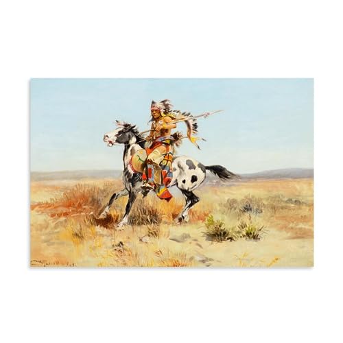 Charles Marion Russell Painters' Works「Indian Warrior」Bedrucktes Leinwand-Poster, Heimdekoration, Wandkunst, zum Aufhängen, Bild, Druck, Schlafzimmer, dekorative Gemälde, Zimmer, ästhetisch, 20 x 30