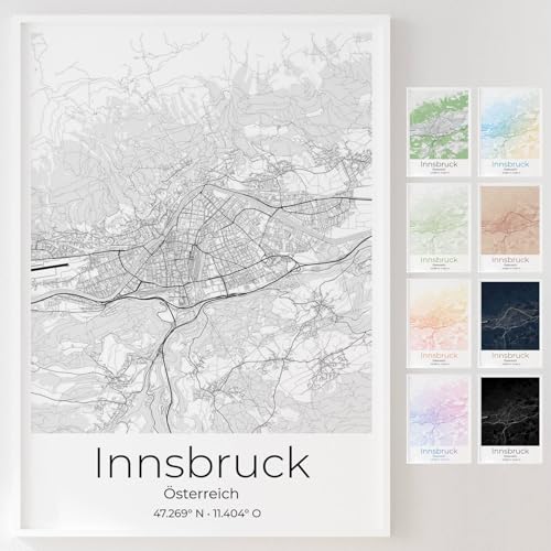 Mapdify Innsbruck personalisiertes Stadtposter, dein Lieblingsort als Wandposter, Karte deiner Stadt, personalisiertes Andenken an Innsbruck – Stil: Studio