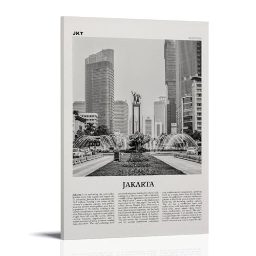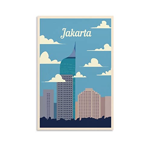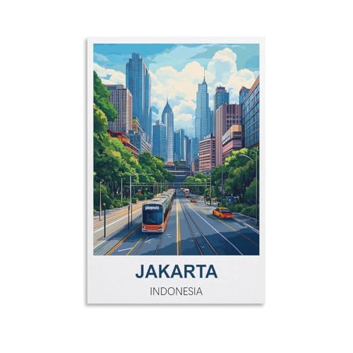KTYWZ Lustige Blechschilder mit der Skyline von Jakarta, Indonesien, Poster, Wandkunst, Gartenhaus, Plakette für Badezimmer, Küche, Café, Wand, Halloween, Weihnachtsdekor, 20 x 30 cm