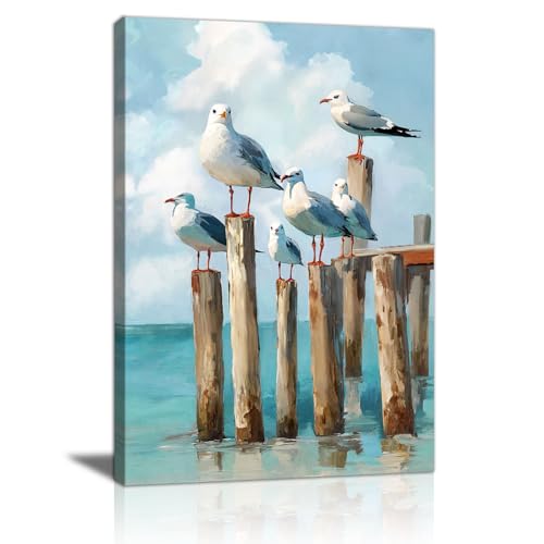 FajerminArt Möwe Landschaft Leinwand Bilder Mit Rahmen, Blau Seevögel in Ruhe Bild Auf Leinwand Natur Vögel Wandbilder Poster Zuhause Wanddeko für Badezimmer Büro Wohnzimmer Schlafzimmer 40x60cm