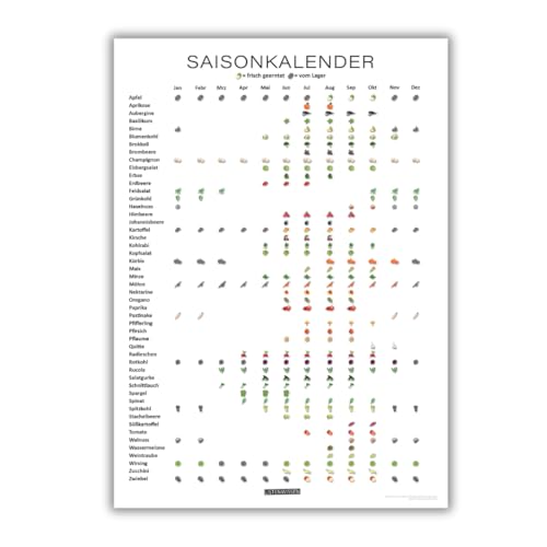 Listenwissen 3er-Set Poster für die Küche: Saisonkalender für Obst & Gemüse, Küchen-Spickzettel & Waschsymbole –Küchenhilfe & Haushalts-Organizer, Deko, Küchen-Poster - A4 ohne Rahmen