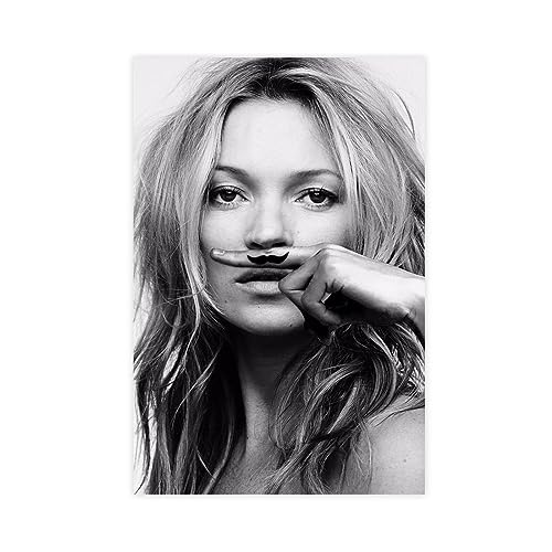 CHIMOSHEJI Kate Moss Poster, modisches Schwarz-Weiß-Poster, Wandkunst, dekoratives Gemälde, für Schlafzimmer, Wohnzimmer, Flur, Küche, Büro, 30 x 45 cm, ungerahmter Stil