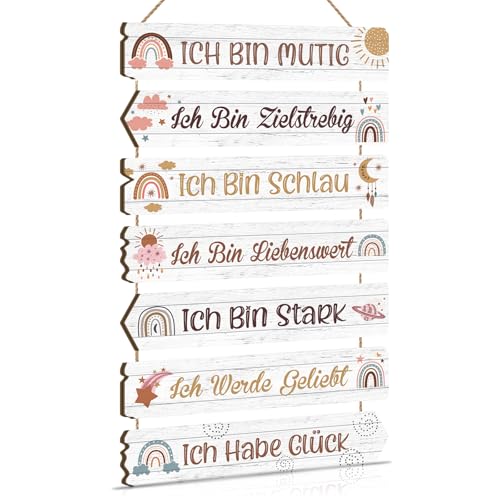 KAIRNE Regenbogen Ich Bin Mutig Wandbild Kindzimmer Wanddeko Mädchen Jungen schild mit Spruch,Inspirierende Zitate Kinder Wandbild mit Spruch,Waldtiere Sterne Sonne Poster für Babyzimmer Deko
