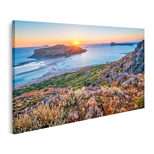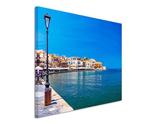Paul Sinus Art Fotoleinwand 90x60cm Landschaftsfotografie – Hafen in Chania, Kreta, Griechenland auf Leinwand exklusives Wandbild moderne Fotografie für ihre Wand in vielen Größen