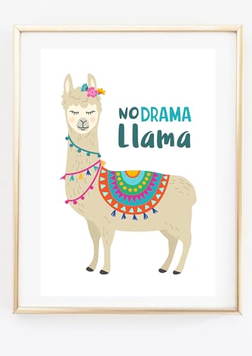 ilka parey wandtattoo-welt Print Poster in A3 oder A4 Lama & Sonnebrille mit Spruch No Drama Lama Plakat Kinderposter Druck Motiv p217 - ausgewählte Größe: *A3-29,7cm breit x 42cm hoch*
