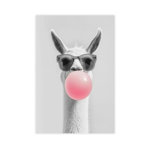 MHLCMG Leinwand Malerei Weiß Alpaka Bilder Wandkunst Moderne Tier Lama Poster Kunstdruck Bild Wand Wohnzimmer Schlafzimmer Dekor Kein Rahmen (3X40X50CM)