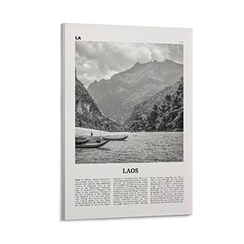 Laos Print Black And White River, Laos Wandkunst, Laos Poster, Laos Foto, Laos Wanddekoration, Lıo, Lao Leinwand-Kunstdruck, Poster für Zuhause, Schule, Büro, Dekorrahmen 30 x 45 cm )