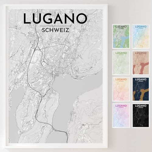 Lugano-Poster, Motiv: Reise-Stadtkarte, dekoratives Gemälde, Leinwand, Wandposter und Kunstdruck, moderne Familienschlafzimmer-Dekoration, Poster, 40 x 60 cm