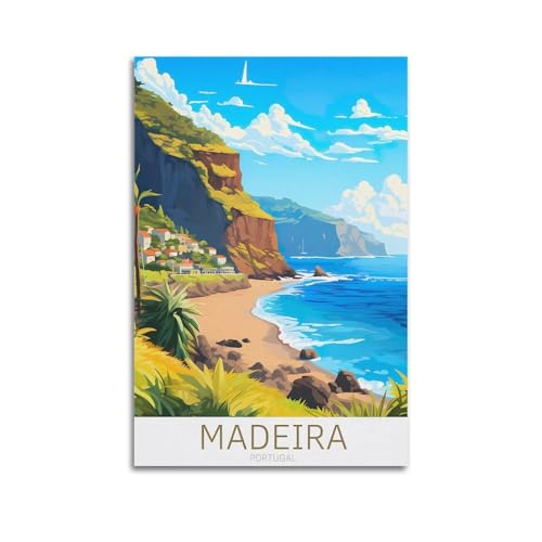 KOPUTE Madeira Portugal Poster Madeira Island Vintage Reise Werbung Poster Vintage Stil Wandschild Wanddekoration Geschenk für Mutter, Vater, Freunde Blechschild 14 x 20 cm