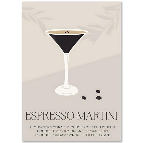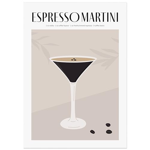 Modern Day Art Espresso Martini Cocktail-Wandkunst, illustriertes Alkohol-Poster mit Zutaten, Vintage-Bar-Poster, Wanddekoration, ungerahmt, 20,3 x 25,4 cm