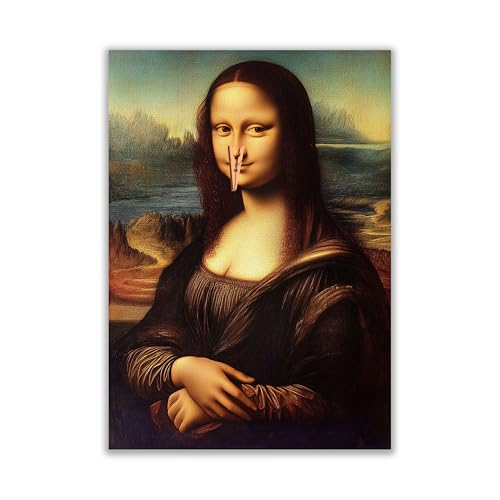 Mona Lisa Badezimmer-Kunst, 50 X 70 Cm Mona Lisa Hält Ihre Nase Badezimmer-Poster, Humorvolle, Skurrile Monalisa-Wandmalerei Dekoration für Küche, Flur, Büro, Wohnung, Toiletten
