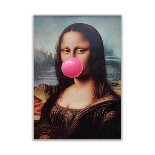 WBdesignz Lustiges Kunstposter – Mona Lisa mit Kaugummi – Moderne Pop-Art Parodie als Wanddeko für Küche, Wohnzimmer, Büro oder Galerie (DIN A4) – ohne Rahmen