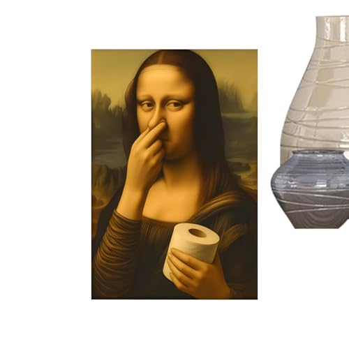 Cunegra Lustige Mona Lisa Toilette Bilder, Witzige Bild Mona Lisa Hält Sich Die Nase Zu, Monalisa Bilder Lustig für Badezimmer Toilette, Gäste-WC, 40 x 30 cm, Ohne Rahmen