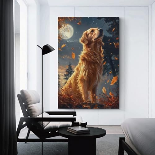 Man And Raven in Golden Moonlight Poster Leinwand Wandkunst Poster Dekoratives Modernes Zuhause Druck Bild Kunstwerke Poster Kunst Leinwanddrucke 12x18inch(30x45cm)